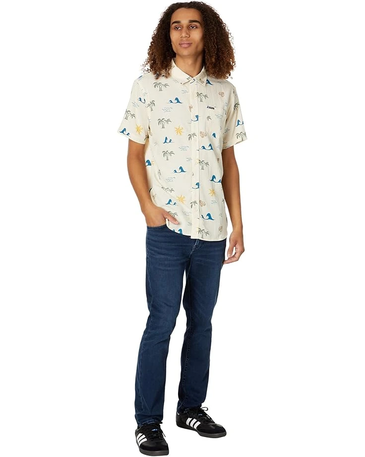 - Make a lasting impression with this sleek and stylish button-up O’Neill® Oasis Eco Standard Short Sleeve Woven shirt with bright palm frond print. It features classic collar, short sleeves, and patch pocket on the left chest with brand tag.